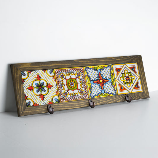 Handmade Anatolian Ceramic Tile Wall Mirror, Pine Frame