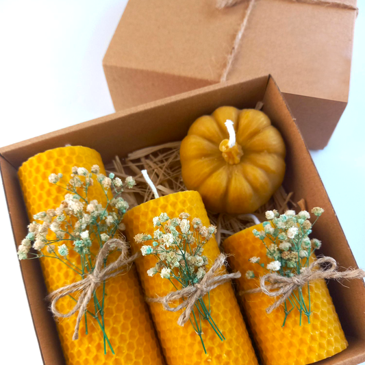 Pumpkin & Rolled Beeswax Candle Gift Set