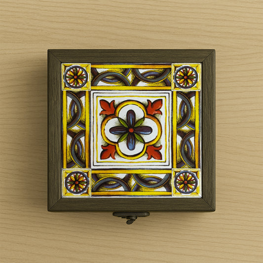 Handcrafted wooden boxes with vibrant ceramic tops – ideal for jewellery, trinkets or thoughtful gifts.