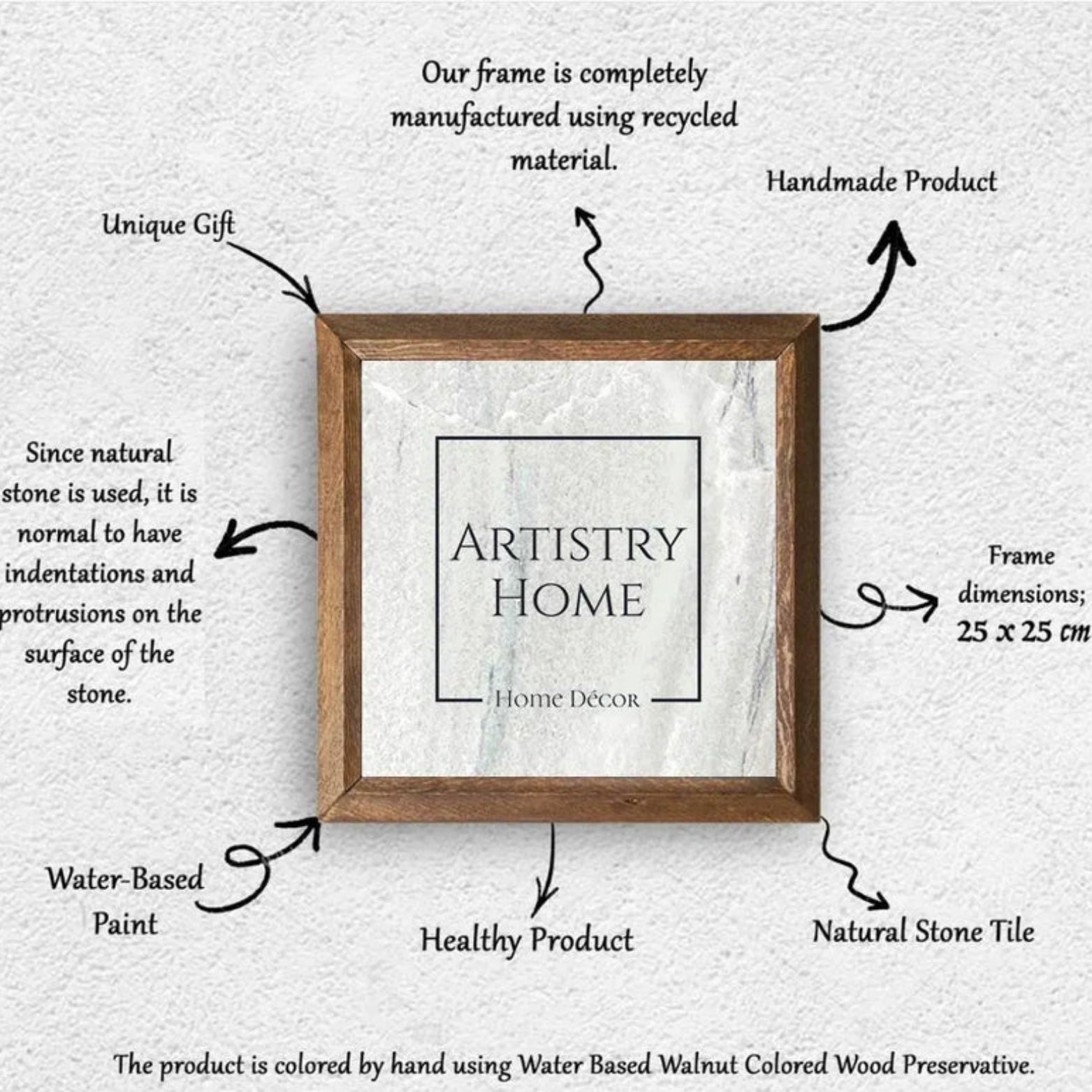 High-Quality Craftsmanship: The stone is expertly mounted in a 100% natural wood frame, handcrafted to perfection. The natural characteristics of the wood, including branches, wood grain, and surface texture, ensure each frame is unique and distinct.