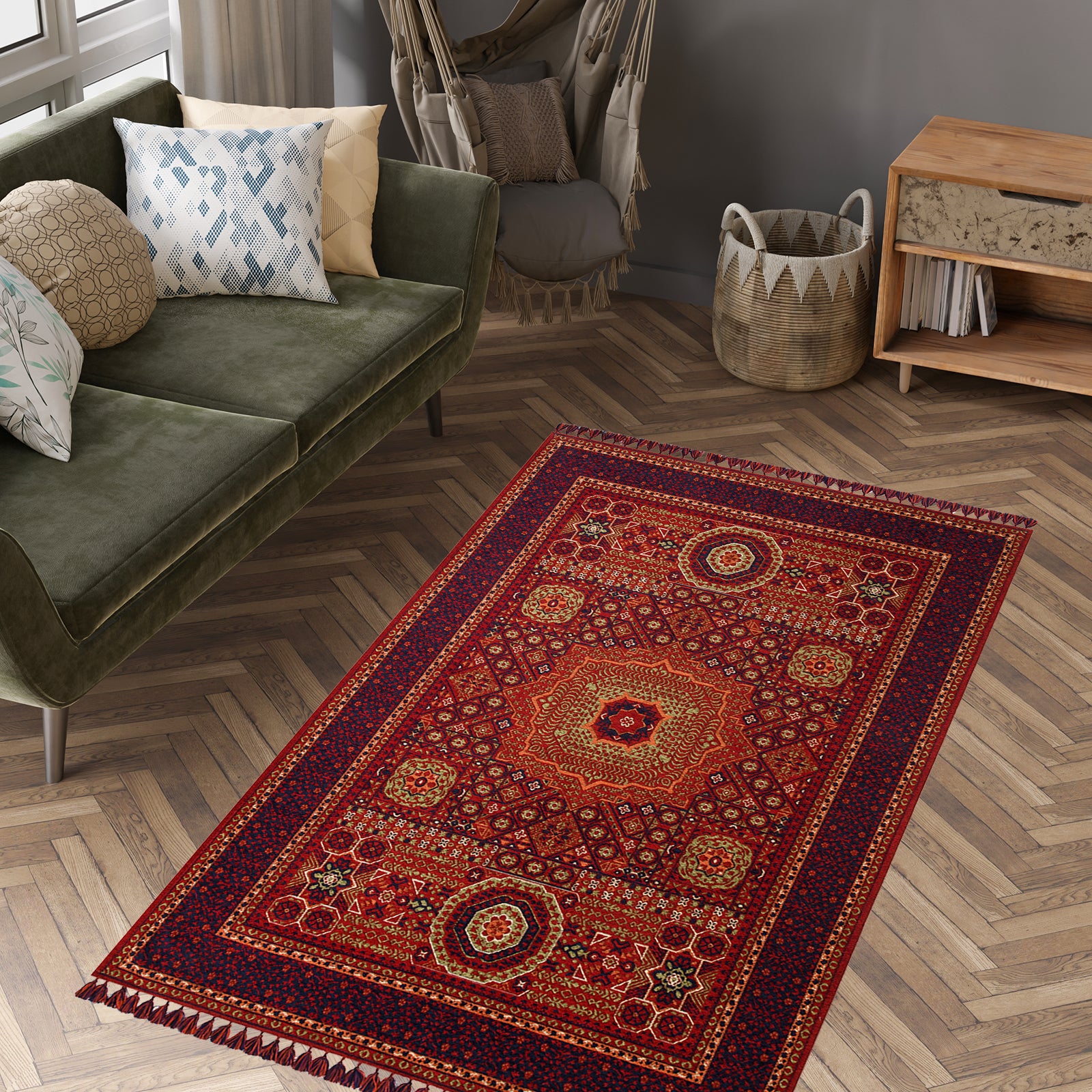 Another key benefit is its washable design, allowing you to keep it fresh and hygienic with ease. Whether placed under a coffee table or in a cozy reading nook, this rug combines traditional aesthetics with modern functionality.
