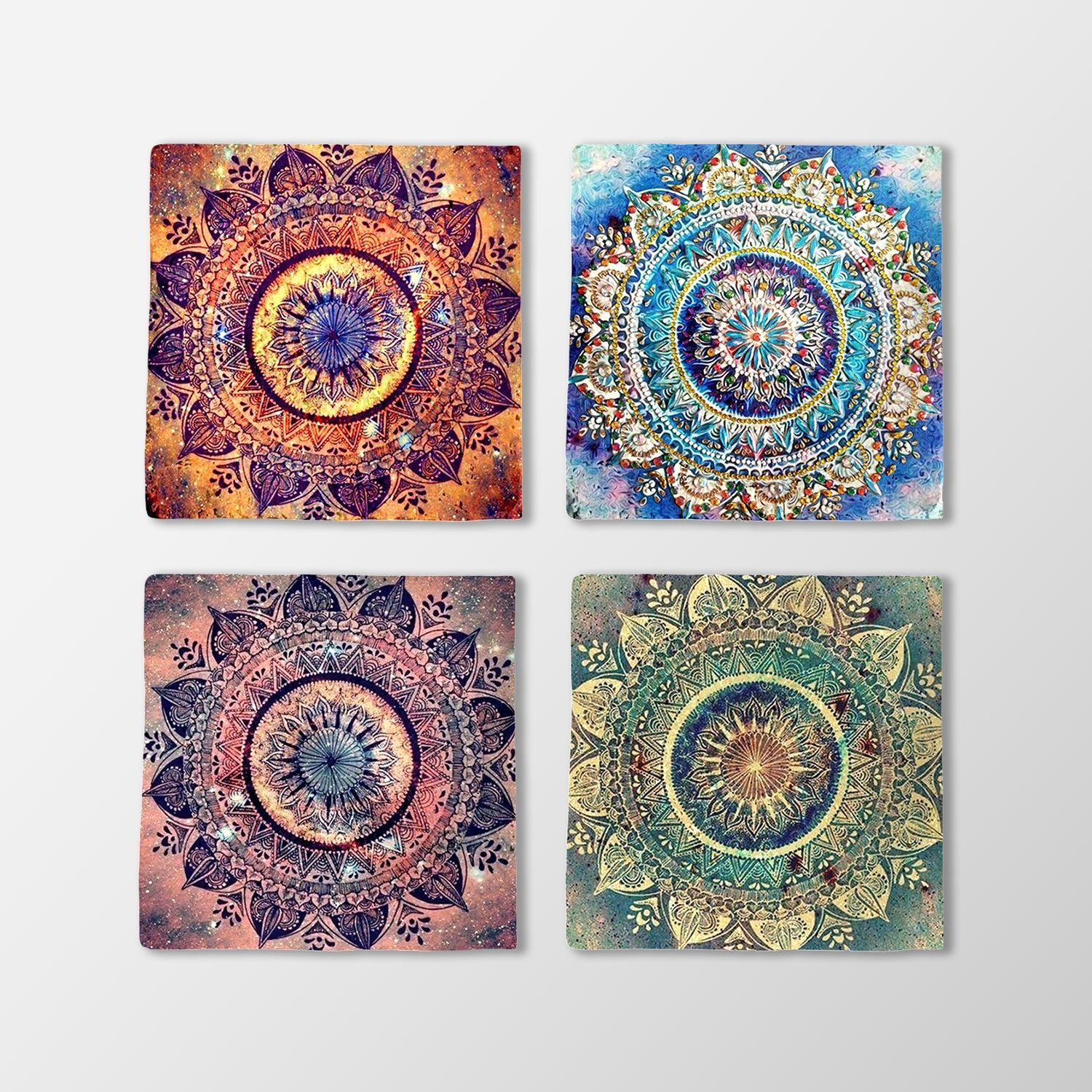 Whether inspired by abstract forms, traditional motifs, or colourful illustrative designs, each coaster is thoughtfully created to bring visual richness and character into your living space.
