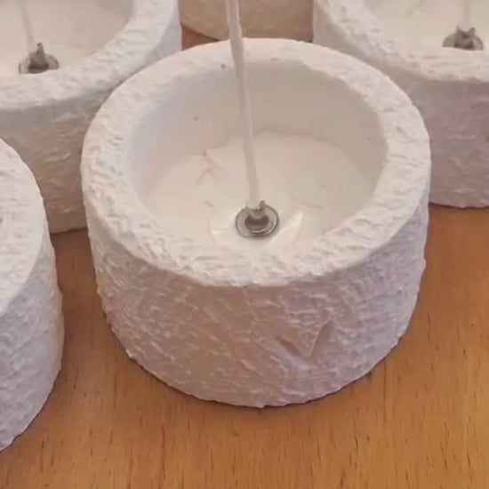 - Housed in unique handmade concrete holders, each with its own texture and tone